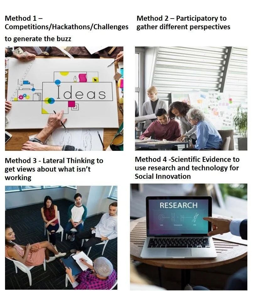 Ideas for Social Innovation can also be developed through specific methods. Here are four examples shared by Tamara Kuhn, Research Scientist & Director of Technology, dfusion